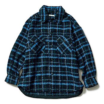 ネイビー×ブルーチェックCPOシャツアウター/フリークスストア(フリークス ストア渋谷) 寒色ベースの配色だから、チェック柄がほっこりせず都会的に。色が増えても、れとなくきちんと見えるえりつきで使いやすい。
