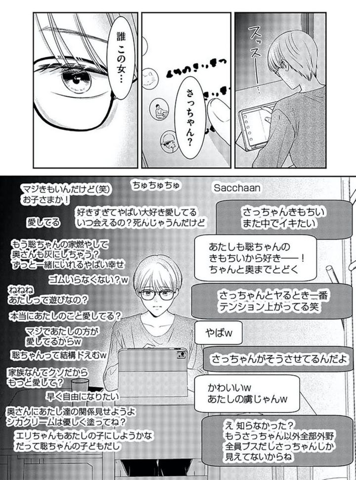 夫のスマホから現れた証拠の数々…しんどくて気持ちが追いつかず【今日も浮つく、あなたは燃える サレ妻が不倫現場に凸る話 #4】