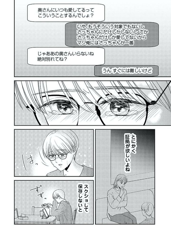 2. 夫のスマホから現れた証拠の数々…しんどくて気持ちが追いつかず【今日も浮つく、あなたは燃える サレ妻が不倫現場に凸る話 #4】