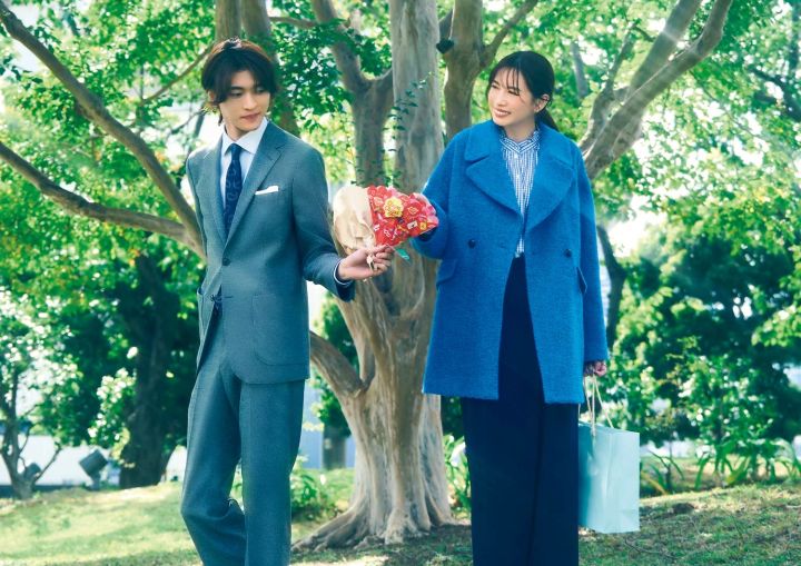 春の日差しに映えるチェック×コートの青コーデで、ウキウキと向かいます。シャツはネックと袖口をのぞかせるだけで甘さをチラ見せ♡