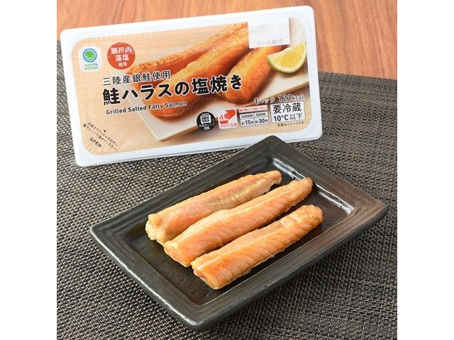 三陸産の銀鮭を使用したハラスの塩焼きです。瀬戸内藻塩で味付けし、熟成させた上で焼き上げました。 ※関東地方の一部、山梨県、静岡県では取り扱いがございません。 東北・関東で販売
