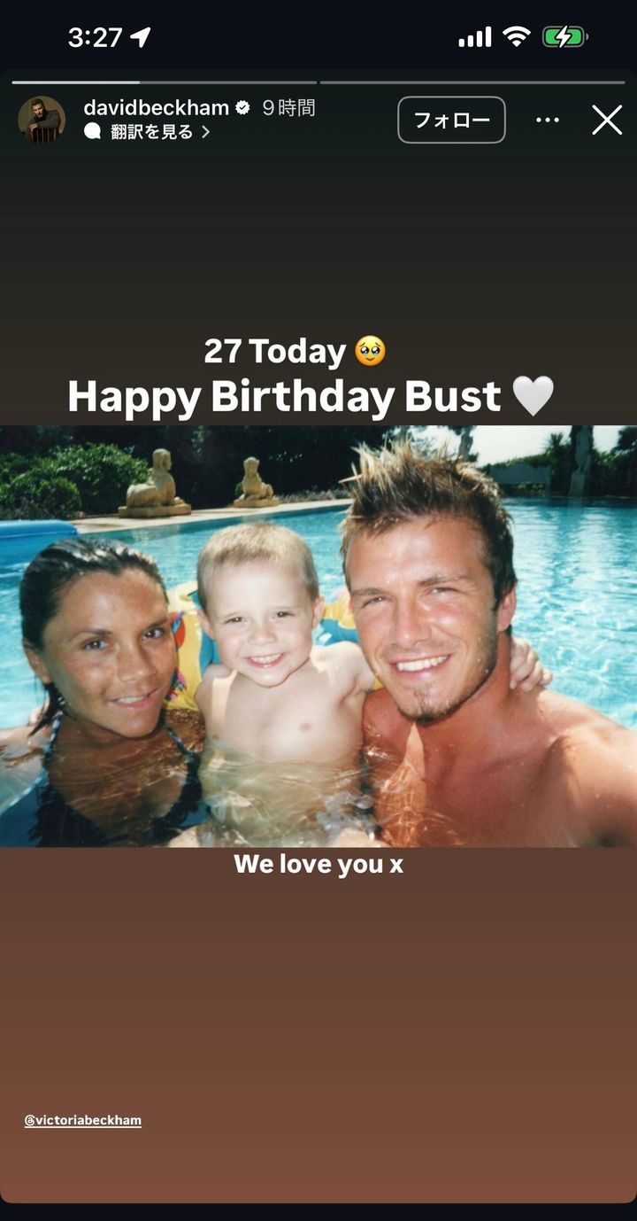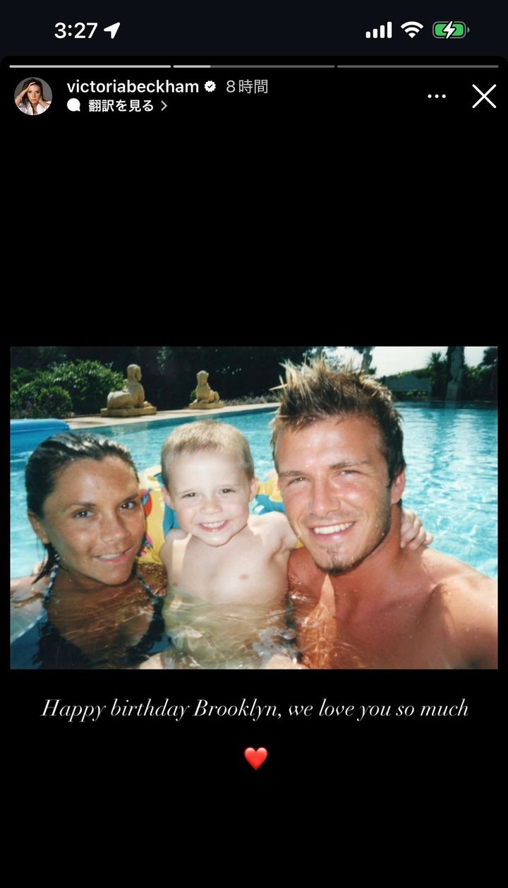ヴィクトリアも同様。プールで撮影した同じ写真を投稿すると「ブルックリン、お誕生日おめでとう。あなたをとても愛している」とメッセージを綴った。さらに小さなブルックリンと遊ぶ2ショットも。ハートの絵文字を連ねて愛を伝えている。