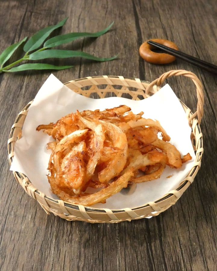 辛味が控えめで、みずみずしく、やわらかい食感が特徴の新たまねぎ。その甘みをダイレクトに感じたいなら、天ぷらにするのがおすすめです。