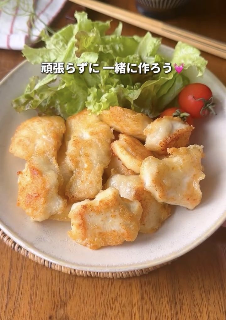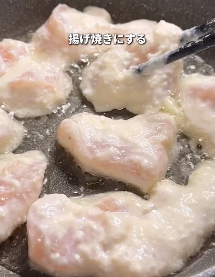 お豆腐のおかげで、中は「本当にむね肉?」と疑うほどしっとり、外はカリッとした最高の食感に。