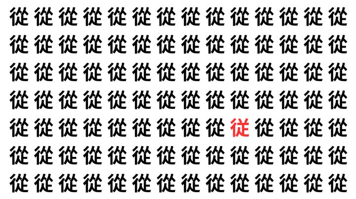 たくさんの「從」の中に、よく似た別の漢字が1文字だけ隠れています。