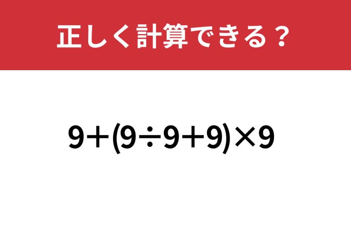 3. 本当の実力が出るかも!?「9+(9÷9+9)×9」正しく計算できる?
