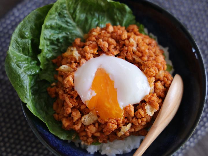 「だまされたと思ってこれ入れてみて!」「サクサクが美味しい」韓国屋台風ヤンニョムそぼろ丼