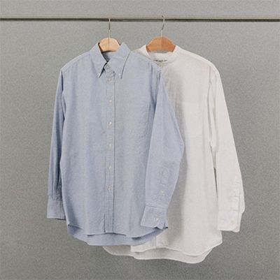 1961年の創業以来、ニュージャージーの職人が1着ずつ仕立て上げるテーラーメイドシャツ。“CLASSIC FIT”のブルーシャツは、高品質なオックスフォード生地を使用し、着るたびに豊かな味が生まれる。“RELAXED FIT”の白シャツは、ツイル生地特有の上品なツヤのある質感が魅力。