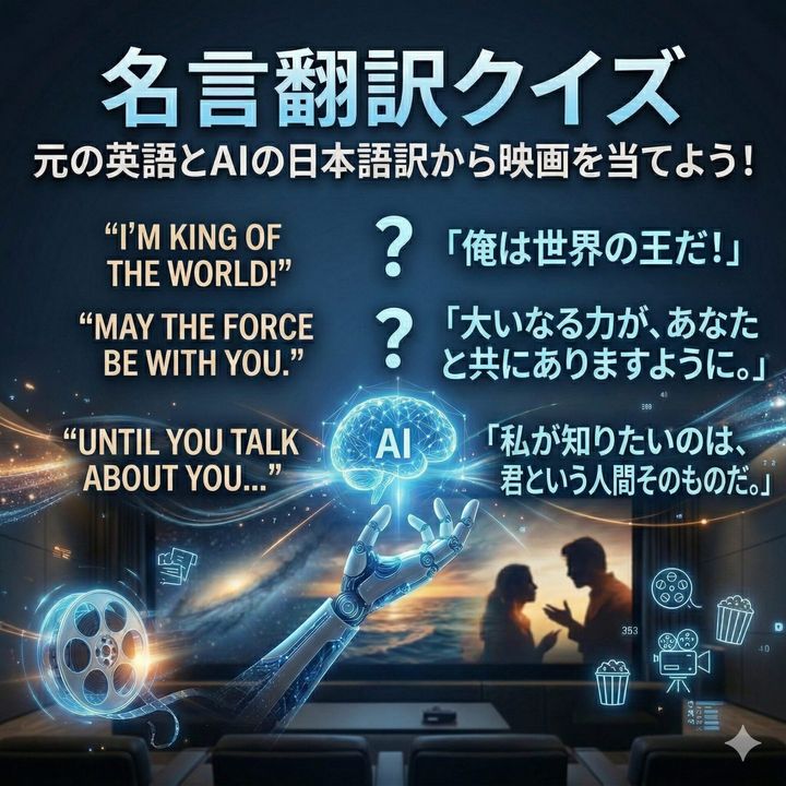 今回は、AIによる日本語訳をヒントに、それが「何の映画のセリフか」を当てるクイズを出題します。