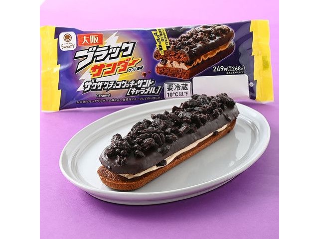2025年の発売時に人気を博した「ザクザクチョコクッキーサンド」を、大阪ブラックサンダーのコテコテな味わいで表現しました。チョコとキャラメルの相性を楽しむザクザク食感が特徴です。 [数量限定]