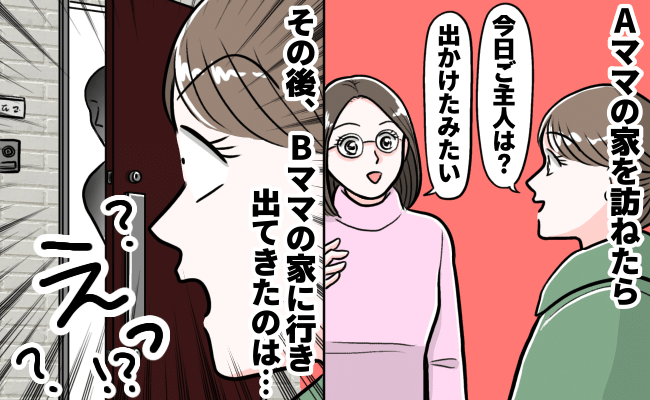 インターホンを鳴らすと出てきたのは……なんとAママの夫! 硬直する私と母。そして「どうしたのー?」と出てきたBママ。
