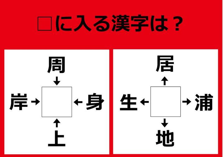 【漢字パズル】岸□、周□、身□、上□ □に入る漢字は何…!?