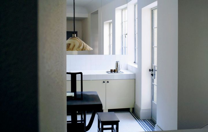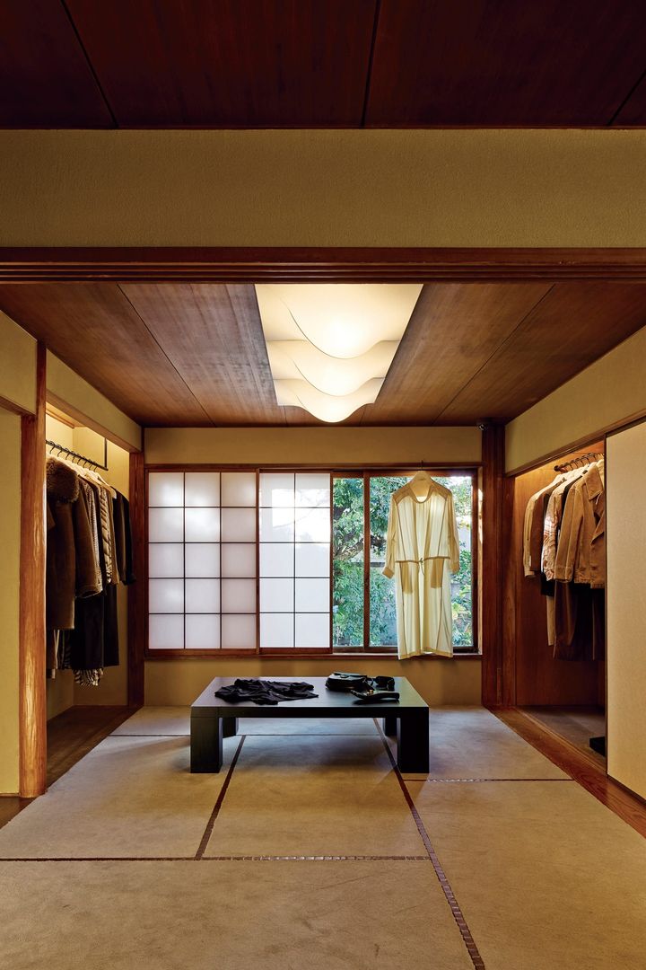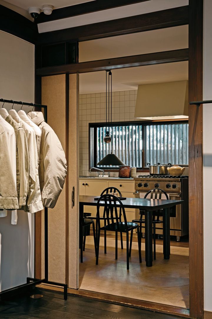 「私たちにとって、場所の歴史を尊重することは非常に重要でした。キッチン、ダイニング、和室など構成はそのままに、自然な形で『ルメール』のコレクションと調和させることが必要だったのです。この場所が特別である理由は、そこにあります」と語るクリストフ。言葉通り、随所に残された建物の歴史と「ルメール」の美学が溶け合った、唯一無二の空間となっている。