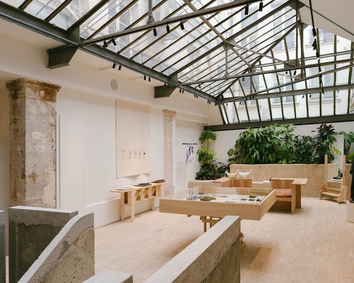 2023年3月にパリ3区のエルゼヴィ―ル通りにオープンした「ルメール」の旗艦店。 この店舗こそがブランドの価値観をインテリアデザインにまで反映した、出発点となる場所だ。デザインを外部の建築家に委ねるのではなく、ブランド内部のチームで手掛けているのが大きな特徴。その結果、「ルメール」が大切にするクラフトや素材感がダイレクトに感じられる空間となっている。