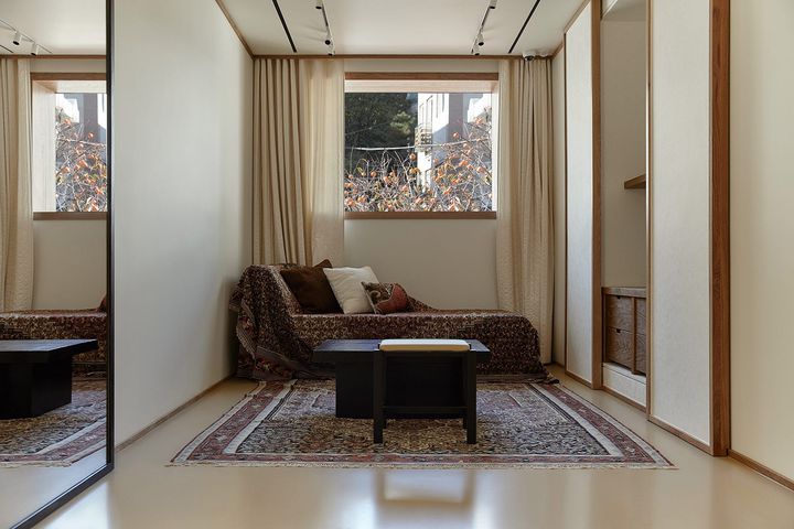 「ここを訪れる人々が、自分自身と再びつながるための、静かに漂うひとときを求めて来てくれたらと願っています。住まいとしての次元は本質的です。服を着るという行為は親密なものであり、公と私の境界がにじみ始める地点でもあります」とクリストフ・ルメールとサラ=リン・トランは語る。