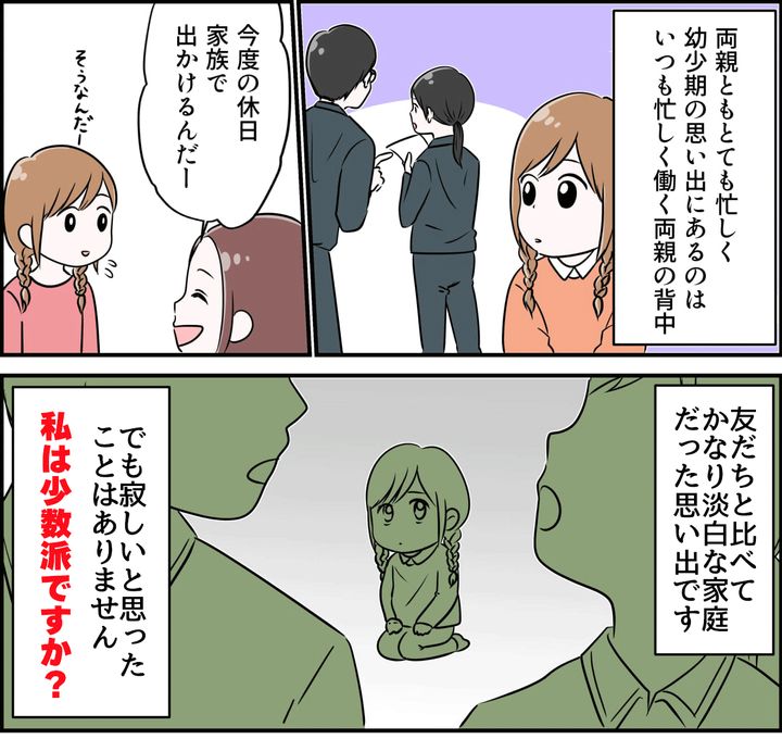 パートや正社員、自営業などさまざまな働き方がありますが、両親ともに忙しいと子どもと過ごす時間を取れなくなってしまうことも。ママスタコミュニティには「自分が子どもの頃、親が共働きだった人。寂しいとか思った?」というタイトルでこんな投稿がありました。父親は平日夜中に帰宅し、母親はパートで18時頃に帰宅していたという投稿者さん。そんな状況でも「寂しい」と感じたことはなかったそうです。