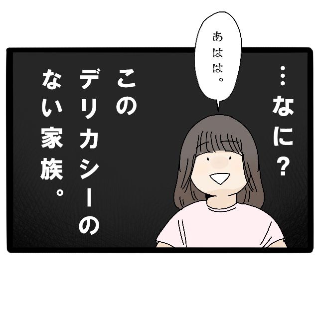 なに、このデリカシーのかけらもない家族。私は真顔のまま、「あはは」と作り笑いを浮かべました。この状況で、一体どうくつろげというのでしょう。義両親にもコウタにも苛立ちは募る一方。私の頭の中は、「一刻も早く帰りたい」という思いだけでいっぱいでした。