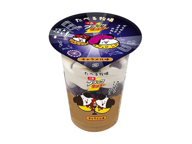 「大阪ブラックサンダー」 のコテコテな味わいをイメージした商品です。たべる牧場のミルクアイスに、クッキーを混ぜ込んだキャラメルアイスと天面と中間層にココアクッキーを組み合わせ、ザクザク食感が楽しめる商品に仕上げました。 ファミリーマート限定