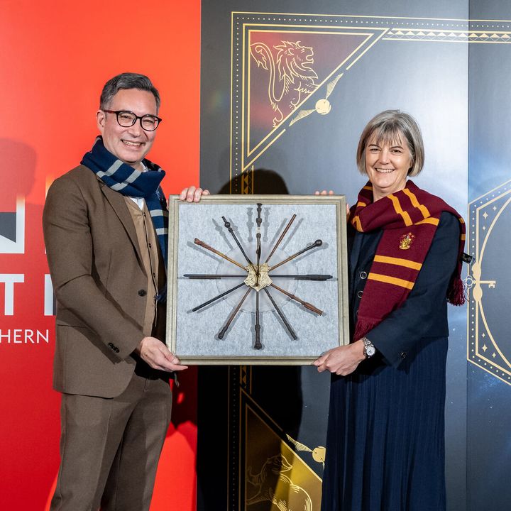 まずは、駐日英国大使のジュリア・ロングボトム氏と、ワーナー・ブラザース・ディスカバリー アジア・パシフィック プレジデントのジェームズ・ギボンズ氏が登壇し、長きにわたり愛され続ける作品への思いと、記念すべきアニバーサリーイヤーのスタートを祝う挨拶が行われました。