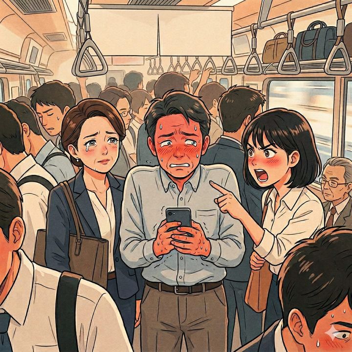 彼女の凛とした声に反応し、周りの乗客たちの冷ややかな視線が一斉に男性へと向けられました。