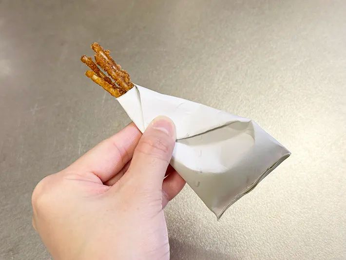 竹串の飛び出し防止のため端を折るのですが、正直これだけだと数本飛び出してしまうので「絶対に安全!」とは言えません。