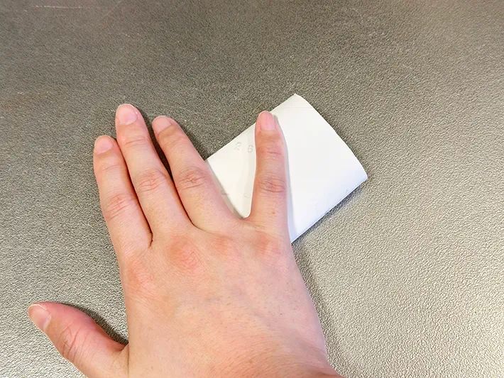まず、トイレットペーパーの芯の端を1か所だけ折りましょう。