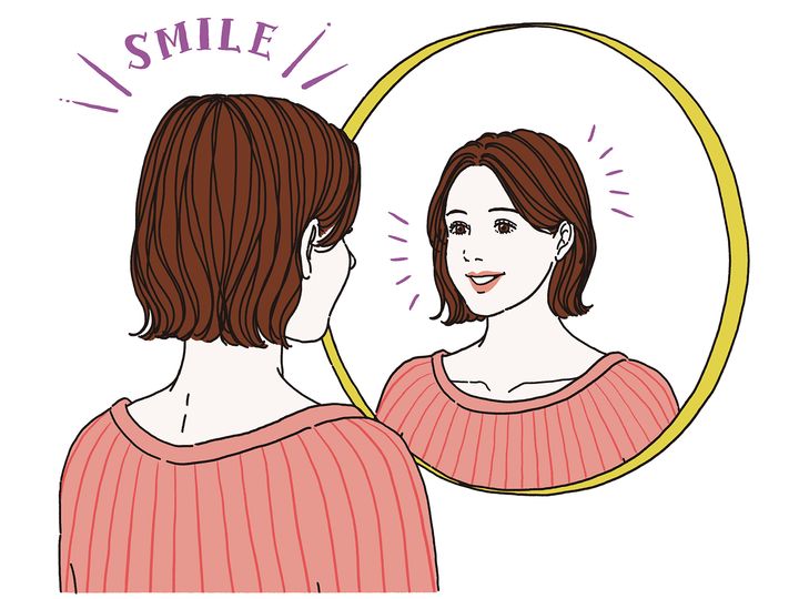 「朝起きたら」鏡にほほえみかける