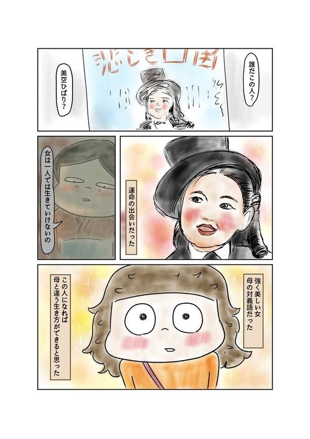 今回は、忍者ママさんの母「えっちゃん」の高校時代について。美空ひばりの存在を知り、「女は一人では生きていけない」という母とは逆の自立した生き方に感銘を受け、やがて「この人になりたい」と思うように。