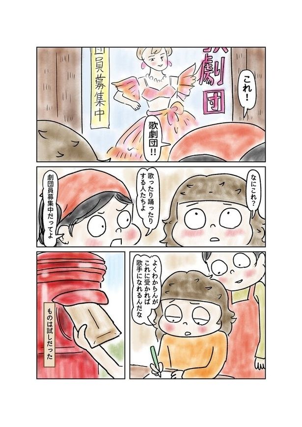 「歌手になりたい」という夢ができたえっちゃんは、歌劇団の入団を希望する。書類選考に合格し、オーディションで歌ったところ、「入れてやらんこともない。ただし条件が一つある」と言われる。その条件は、保護者の許可をもらうこと。が、母は「絶対に許さない」と許可をしなかった。