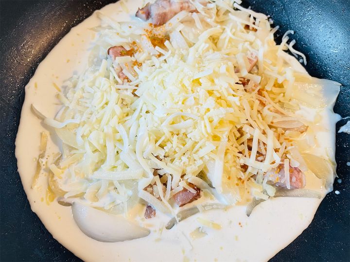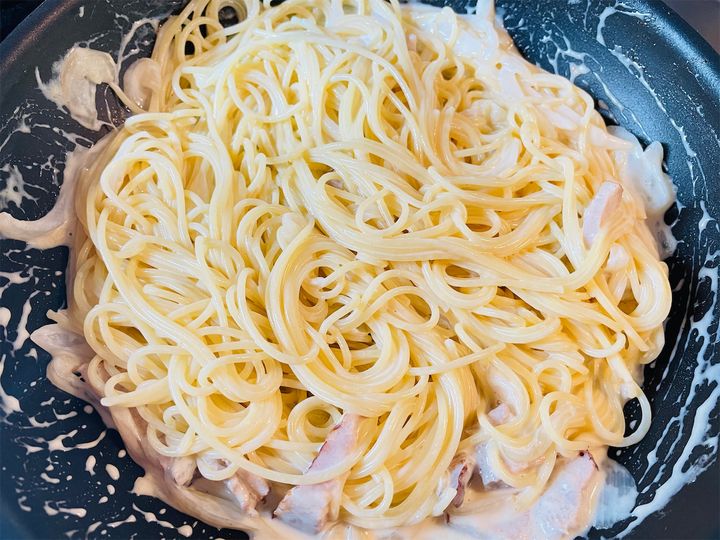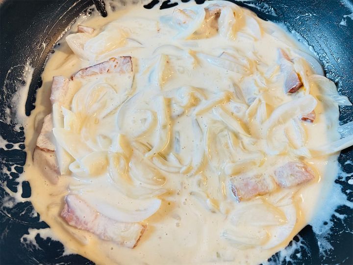 3. 【春になったら絶対作れ】菜の花×新玉ねぎで「カルボナーラ」作ってみた!濃厚クリームが沼るおいしさ♡