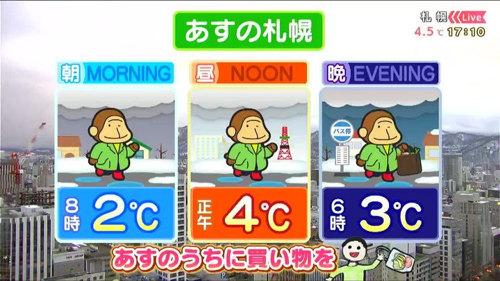あす6日(金)の札幌です!朝昼晩の天気をもんすけでお伝えします!