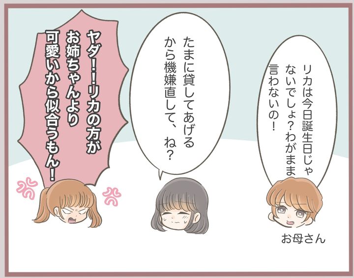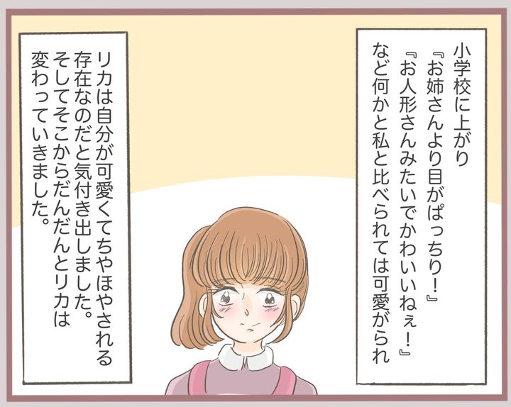 ゆいには、フランス人形のように美しい妹・リカがいる。幼い頃から容姿を褒められ、ちやほやされて育ったリカは、「自分は姉より価値がある」と思い込み、次第にゆいを見下すようになる。やがてその言動はエスカレートし、姉の彼氏にまで目を向け、何でも横取りするように……。しかし最後には、妹の人生が大きく転落することに。血がつながっているからこそ生まれる、姉妹の複雑な関係を描いた物語。