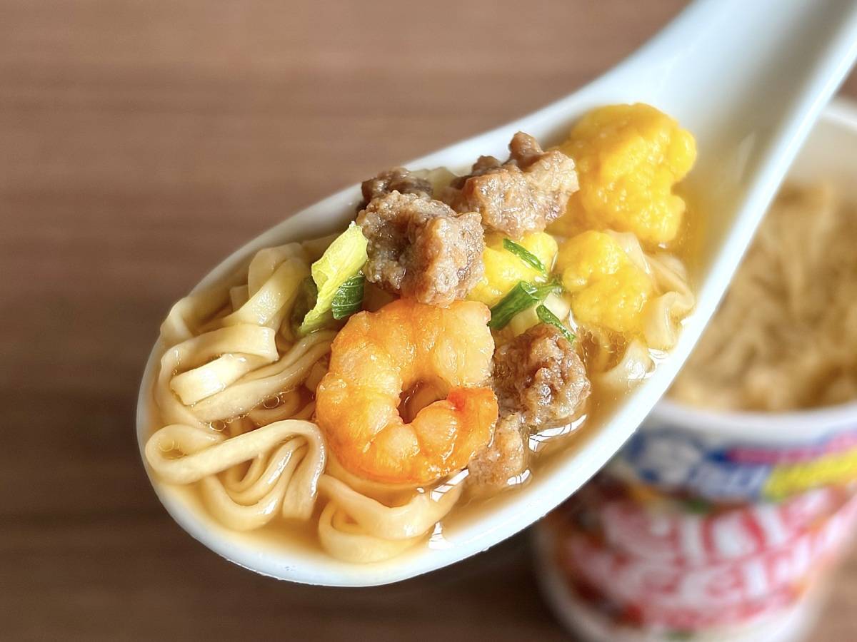 ふんわりと香るカップヌードル特有の匂いに、食欲が掻き立てられます!