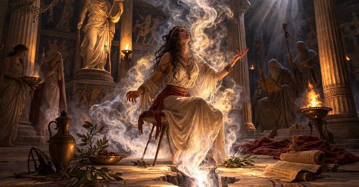 実際、デルポイでは複数の女性が交代で神託を担当していたとされており、トランス状態に入ることが大きな身体的負担だったことがうかがえます。