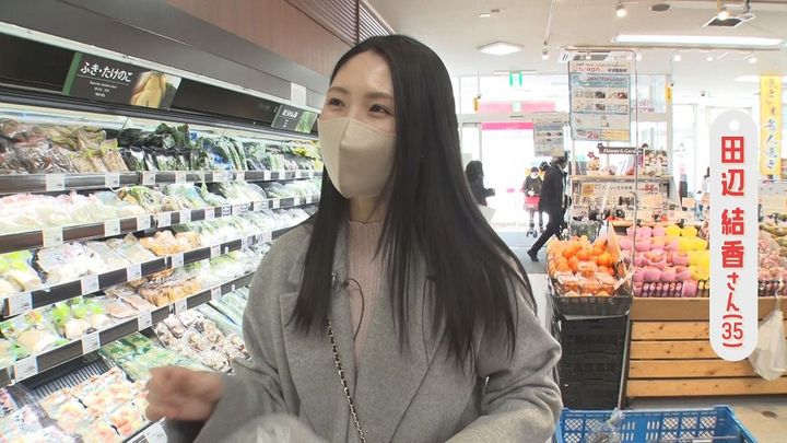 番組スタッフ:「きょうは何を買いにきた?」田辺さん:「あさって夫の誕生日なのでその材料を買いにきた。ポテトサラダと唐揚げが好きなので」