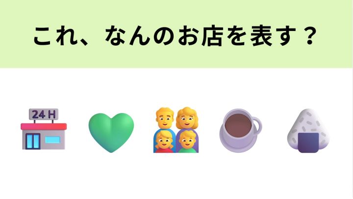 🏪💚👨 👩 👧 👦☕🍙」が表すお店は一体なんでしょうか?