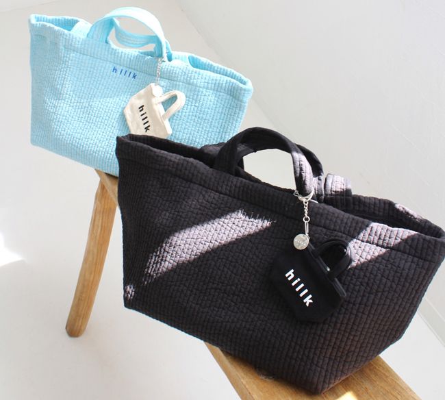 人気は、ポコポコとしたキルティング模様と中綿入りのイブルという生地で作られた「ヌビバック」(写真上)。肌ざわりが良く手洗い可能で、洗うほどにキルティングが空気を含むのでふっくらと柔らかい風合いになるそう。また、底板がついているので大容量でも自立するなど使いやすさも工夫されています。