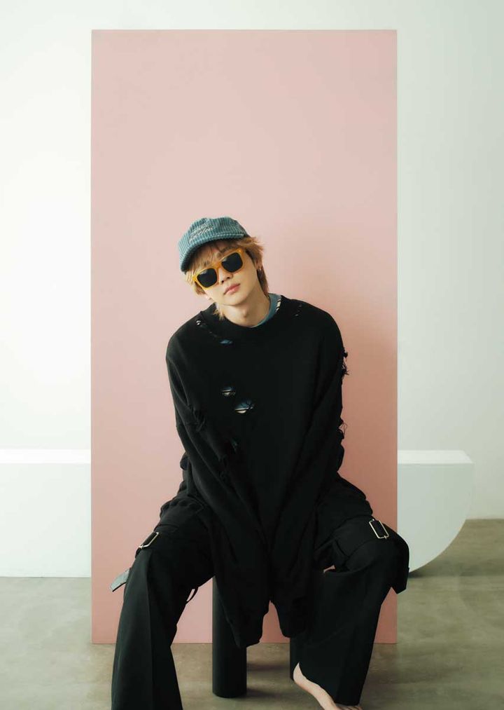 吉野北人。ar11月号よりスウェット¥33,000/ネフォロジスト 中に着たカットソー¥23,700/エックス オーエックスオーグッドボーイ(ハナ コリア) パンツ¥49,500/アナーキスト テーラー(シアン PR) メガネ¥17,000/ オンデーズ スカーフ¥14,300/ボブ (タキヒヨー) サングラス¥24,200/サラギーナ(コーモドドゥーエ) 帽子¥ 4,950/サブライムロー(ティーニー ランチ) アクセサリー/本人私物