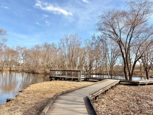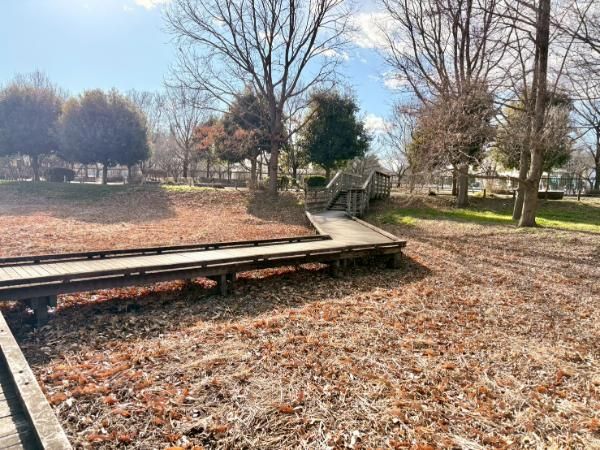 園内は、駐車場近くの遊具のあるエリアと、芝生広場、沼のあるエリアに分かれています。 全体を通してバリアフリーになっているので、お散歩にもぴったりです♪