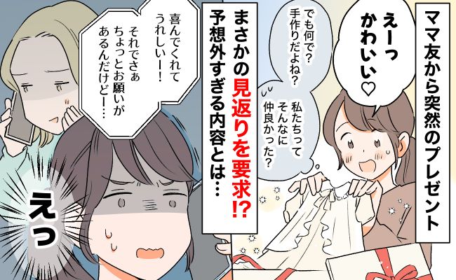 「手作りのベビードレス…?」ママ友から突然届いた大きな箱。お礼の連絡をすると交換条件をつけられ!