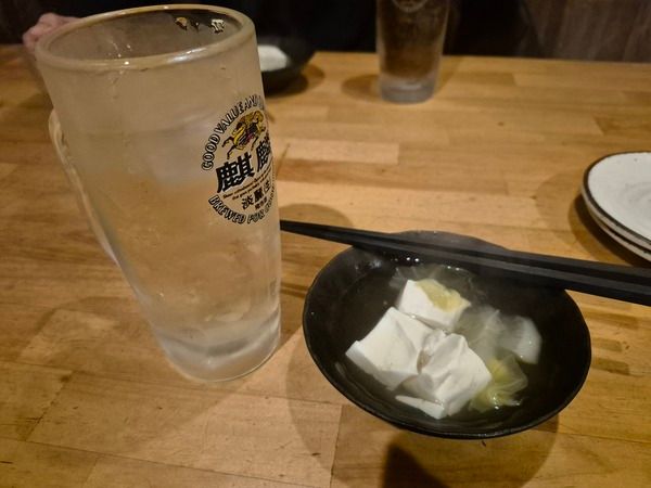 この日のお通しは、豆腐と白菜と大根の煮物でした。