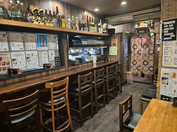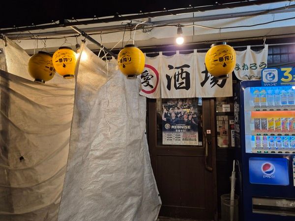 騎射場駅の目の前にあり、方向音痴の私でも迷わずたどり着けました。赤提灯ならぬ黄色提灯とのれんが目印です。