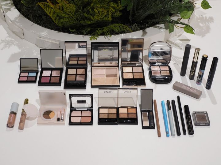 RMK リッド インプレッション リクイド アイシャドウ 05ミックス オブ ヘヴン 4,180円 エレガンス シルキー リクイッド アイズ N 10 ピーチピューレ 3,300円※ アディクション ザ シングル アイシャドウ パール 104P Smoky Taupe 2,970円(ケースとセット) エクセル スキニーリッチシャドウ N SK01 トゥルーブラウン、SK05 アプリコットブラウン 各1,650円※ ルナソル アイカラーレーションN 18 Harmonized Ray 7,700円 コスメデコルテ スキンシャドウ デザイニング パレット 10 ruddy quartz 7,700円※ JUNGSAEMMOOL アーティスト アイパレット ヌード ソフトヌード 4,950円(編集部調べ)※ THREE スターゲージングアイシャドウクアッド 10 GARDEN SPACE 7,480円 shu uemura アイスカルプト アッシー ローズ 7,480円 AINOKI mebuki インナースケープ アイシャドウパレット 02 澄明 5,500円※ KATE バウンシーチークシャドウ PK-2ピンクムース 1,650円(編集部調べ)※ マジョリカ マジョルカ ラッシュエキスパンダー ネオラッシュ BK909 ダークブラック 無重力 1,760円※ セザンヌ ロングブーストマスカラ 01 リアルブラック 693円※ ヒロインメイク ロングUPマスカラ スーパーWP N 03 グレーブラック 1,320円※ OSAJI ニュアンス ボリューム マスカラ 08 Hitominooku 3,300円※ アディクション ザ ジェル アイライナー 103 Dark Cinnamon 3,300円 デジャヴュ 密着アイライナー 極細クリームペンシル 108 シアーチャコール 1,320円 キャンメイク クリーミータッチライナー 16 プリティミルクティー 715円※ KATE ナミダノツルギライナー BR-1チャコールブラウン 1,650円(編集部調べ)※ RMK グラフィック リクイド アイライナー EX-01メタリッククローバー 3,300円 HBL BEAUTY HBL 3Dクッションブロウ 02 ライトブラウン 3,960円※ メイベリン ニューヨーク メイベリン SP フラッフ ブロウ ムース 01 グレーブラウン 1,672円 KATE デザイニングアイブロウ3D EX-13 グレージュブラウン系 1,210円(編集部調べ)※ ETVOS ニュアンスカラーマルチマスカラ ベーシックブラウン 2,970円※