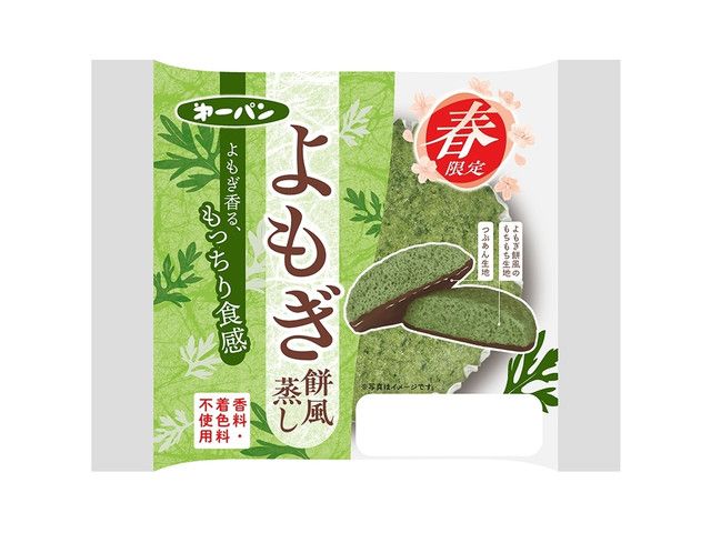 よもぎを練り込んだもっちりした生地とつぶあん生地の2層の蒸しぱんです。 カロリー:308kcal 【販売地域】関東・中部・関西・中国・四国