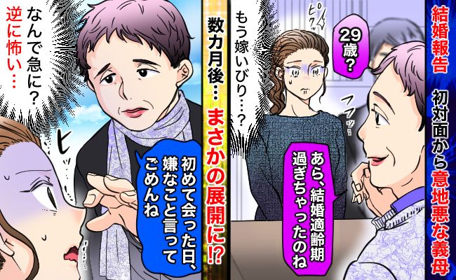 義母「適齢期過ぎちゃったね〜」結婚報告で初めて会った私にボソッ。29歳だから?嫁いびり?数カ月後