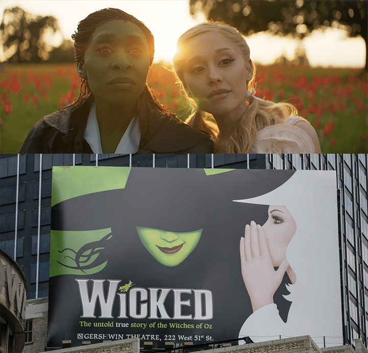 本作を締めくくる最後のショットにも、大きなイースターエッグが仕込まれている。ポピーが咲く草原で、エルファバとグリンダが寄り添い合って座り、エルファバの耳元でグリンダがそっと何かを囁くシーンだ。これは、ビルボードやポスター、プログラム冊子に使われているアートワークを再現したもので、ミュージカルファンに向けた製作陣からのラブレター。
