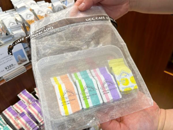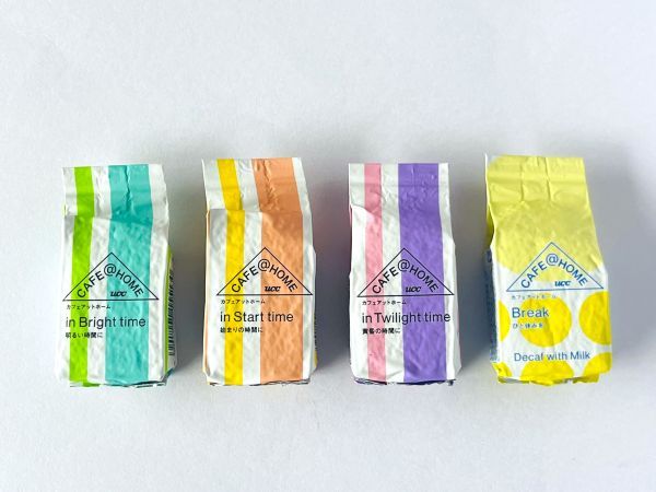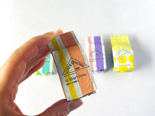 この日は特に目的はなく、後ろの通路をふらっと通ったときに偶然見つけました。それが、「CAFE@HOME」の“シーンに合わせて選ぶコーヒー”。「かわいい♪」と、一目でパッケージに釘付けに。しかも、気になるコーヒーを1杯分から購入できるとわかり嬉しくなりました。