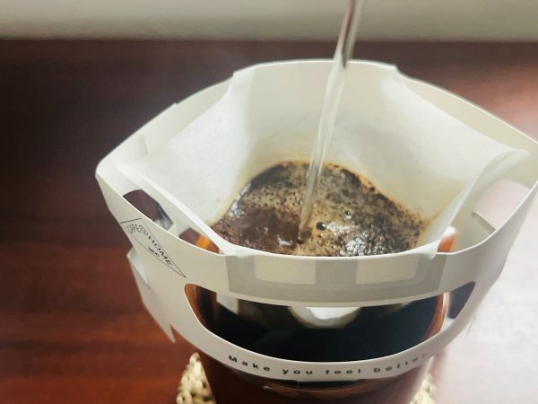 お湯を注ぐときは少し緊張。しかし、フィルターの口が広くしっかり固定されているので、不慣れな私でもスムーズに淹れることができました。 立ちのぼる香りに包まれて、優雅な気分に。