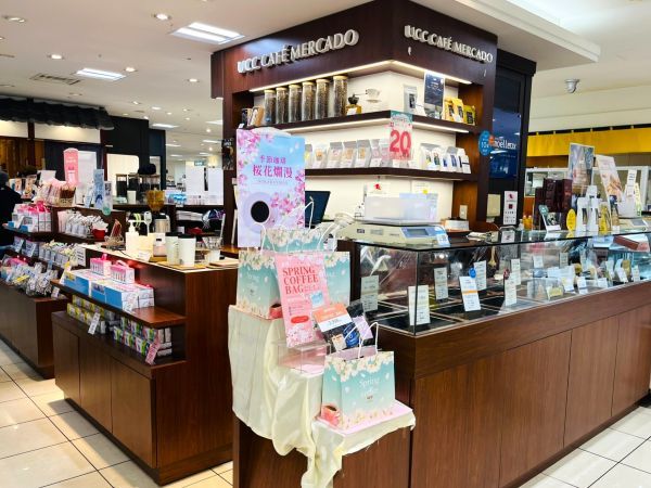 お店は、いよてつ髙島屋地下1階にある『UCCカフェメルカード』。コーヒー豆が10種類近く並び、いよてつ髙島屋限定「伊予だんだんブレンド」も販売されています。