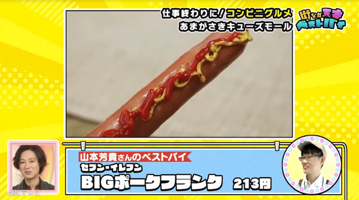 業務用食材を揃えるももひこやの男性副店長は、妻に内緒で「仕事帰りにめちゃめちゃ買う」という、セブン-イレブンのBIGポークフランクがベストバイ。「帰ったら妻のご飯があるな~」と思いつつ購入することが、1週間に3~4回もあるのだそう。「(放送を見た)妻が驚くかもしれない……」と苦笑いする副店長に、天才ピアニストが「ギクシャクせんといてくださいね~」と伝えると、スタジオは笑いで包まれました。
